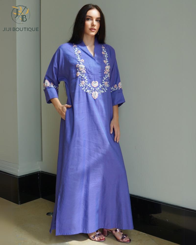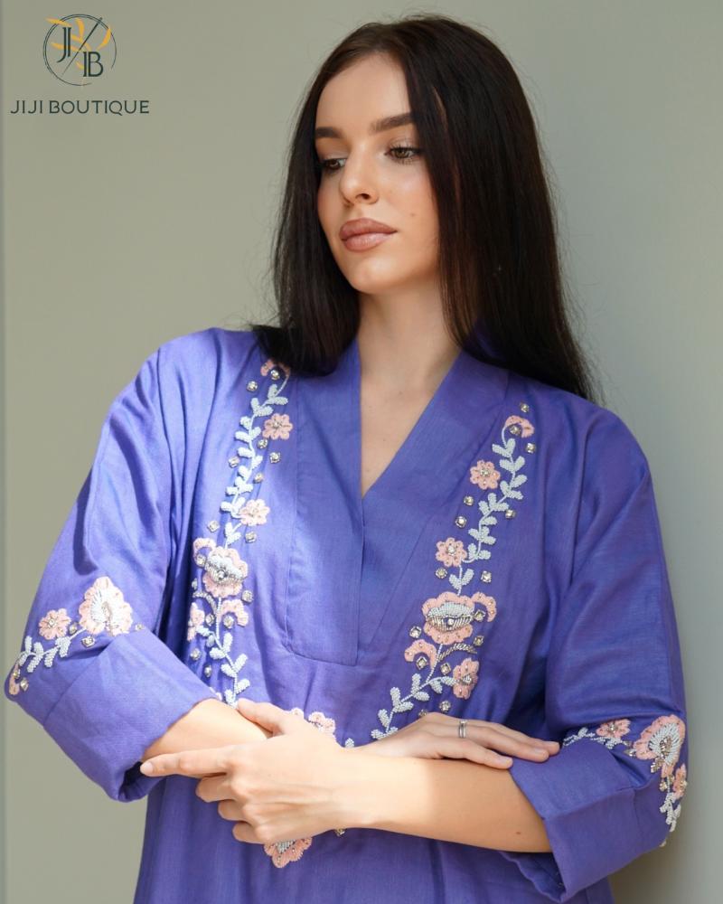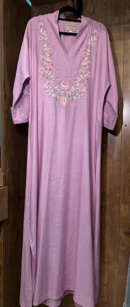 ثوب اللينن شك يدوي دقيق و تطريز يدوي يُعد خيارًا مثاليًا لإطلالة تجمع بين الراحة والأناقة