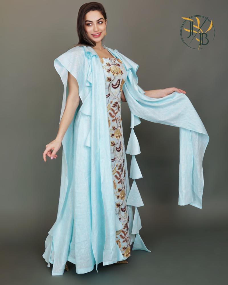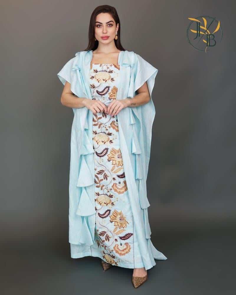 ثوب اللينن مطرز من قطعتين يُعد خيارًا مثاليًا لإطلالة تجمع بين الراحة والأناقة