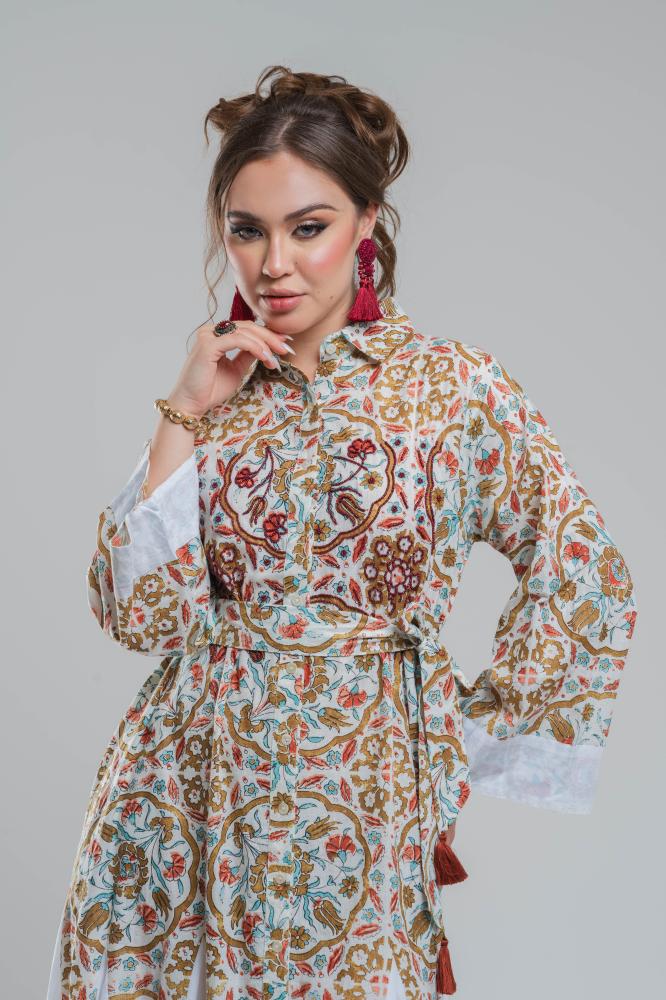 فستان قطني خفيف وبارد، بتصميم أنيق وشك فاخر على الصدر يمنحك الراحة والفخامة في كل مناسبة