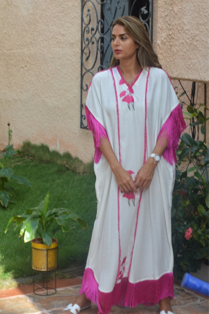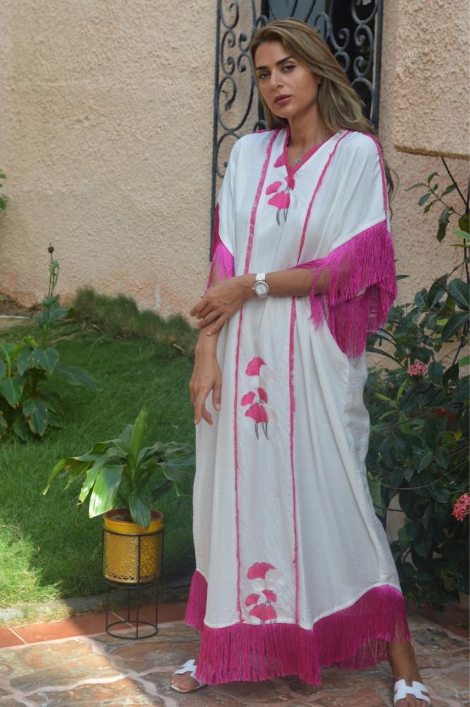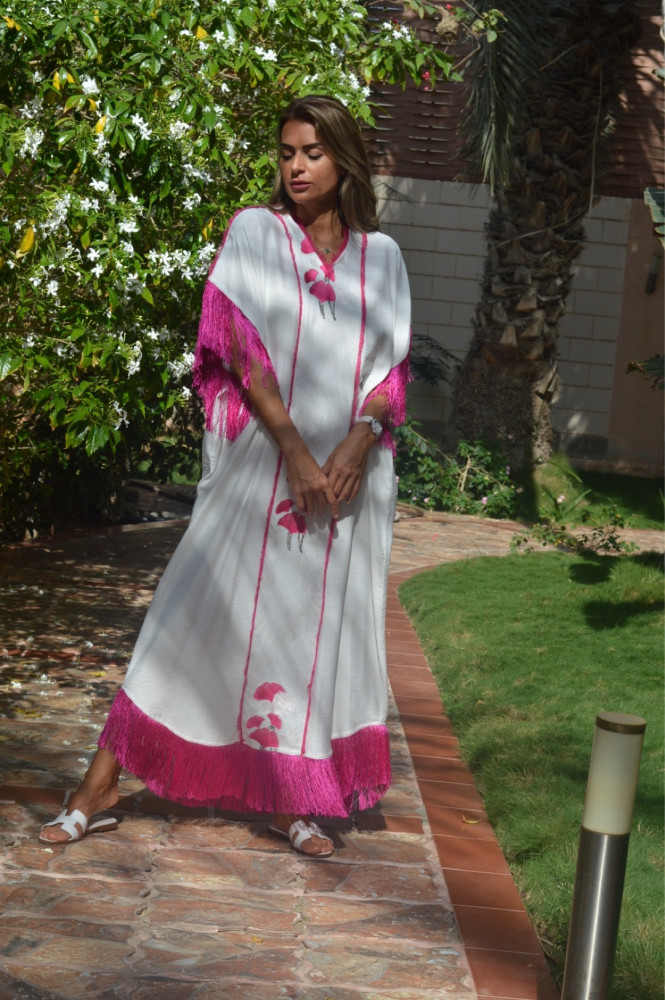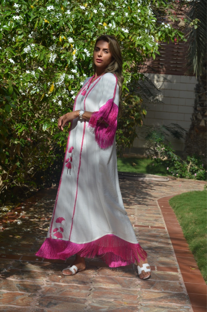 ثوب تطريز نخيل و جمال بينك