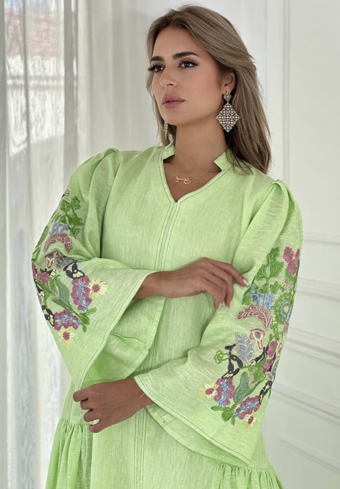 ثوب اللينن مع الحزام يُعد خيارًا مثاليًا لإطلالة تجمع بين الراحة والأناقة