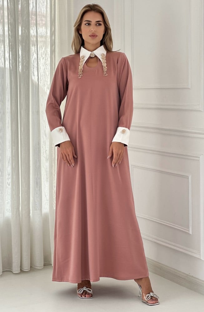 ثوب اللينن مع ياقة مشكوكة شك يدوي انيق و فخم يُعد خيارًا مثاليًا لإطلالة تجمع بين الراحة والأناقة
