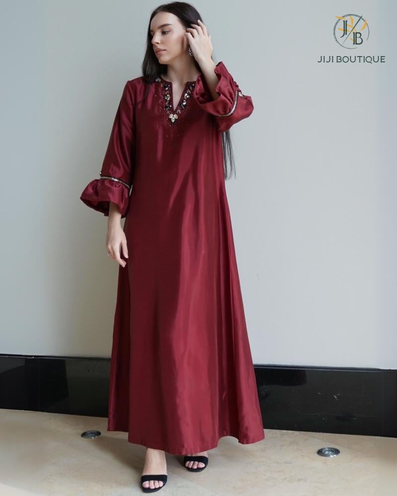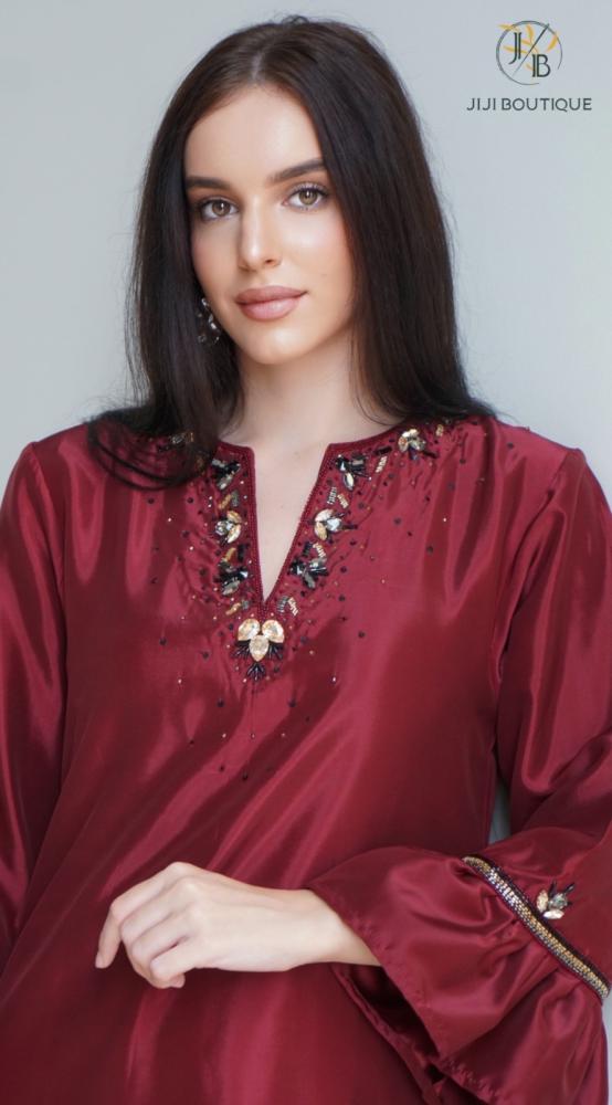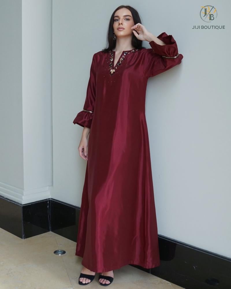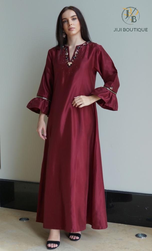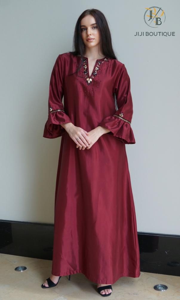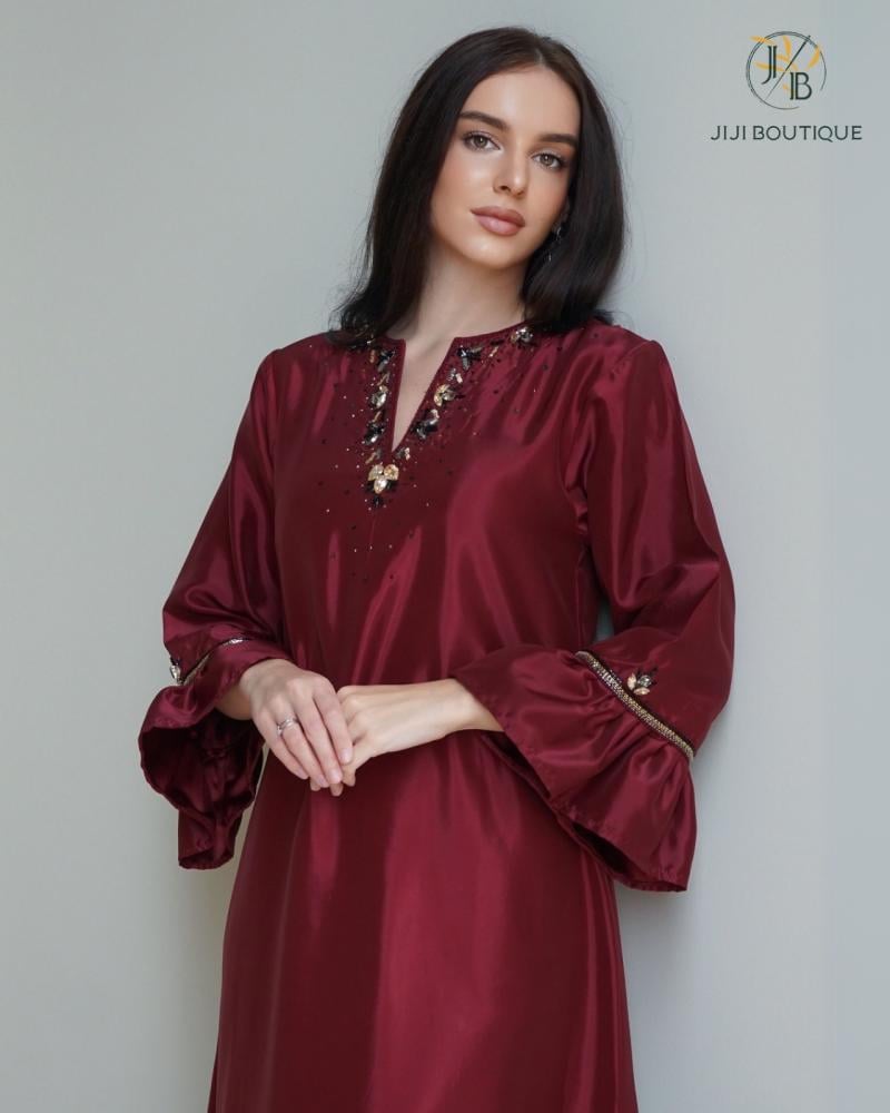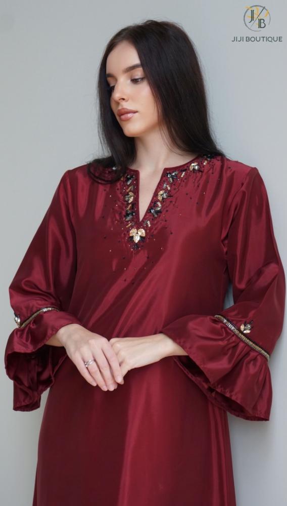 ثوب العيد فخم و أنيق مشكوك بالكريستال من الصدر و الأكمام