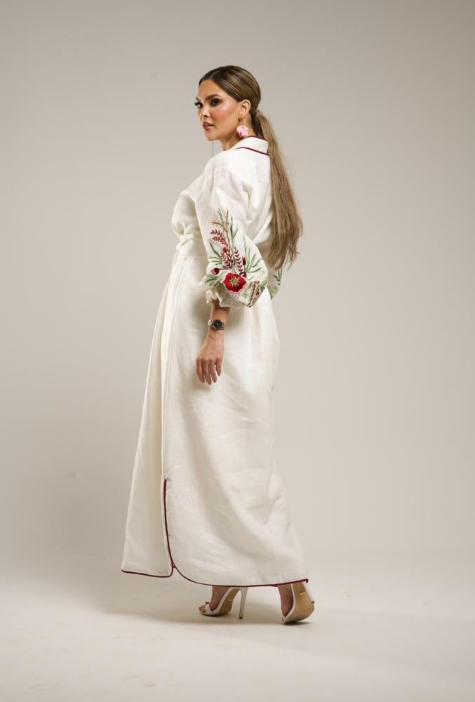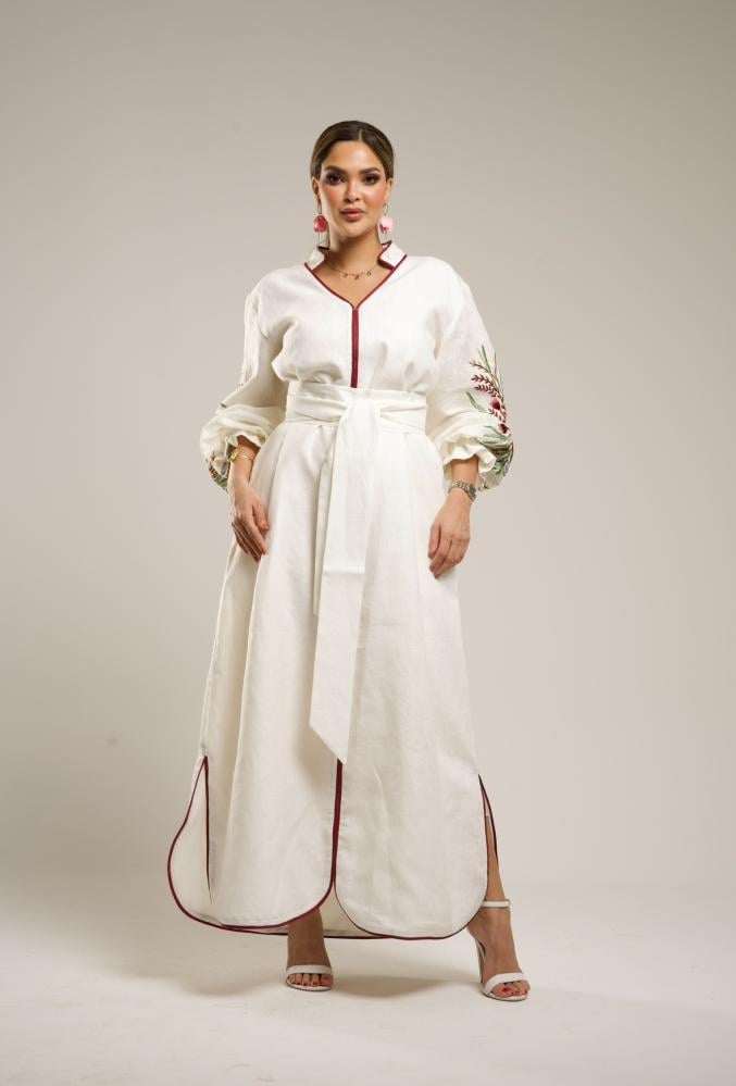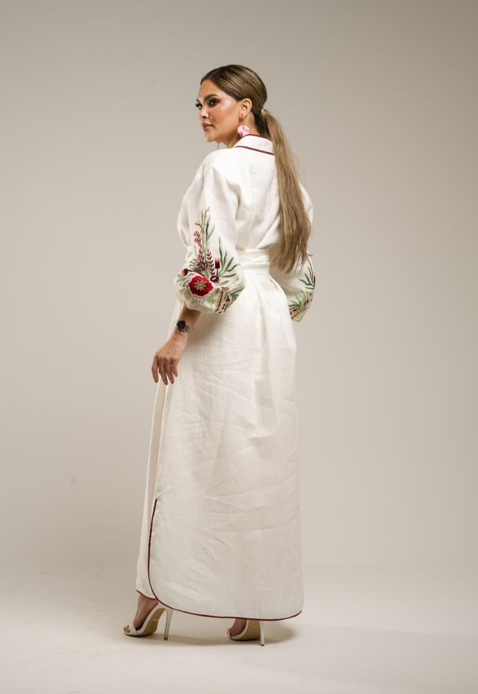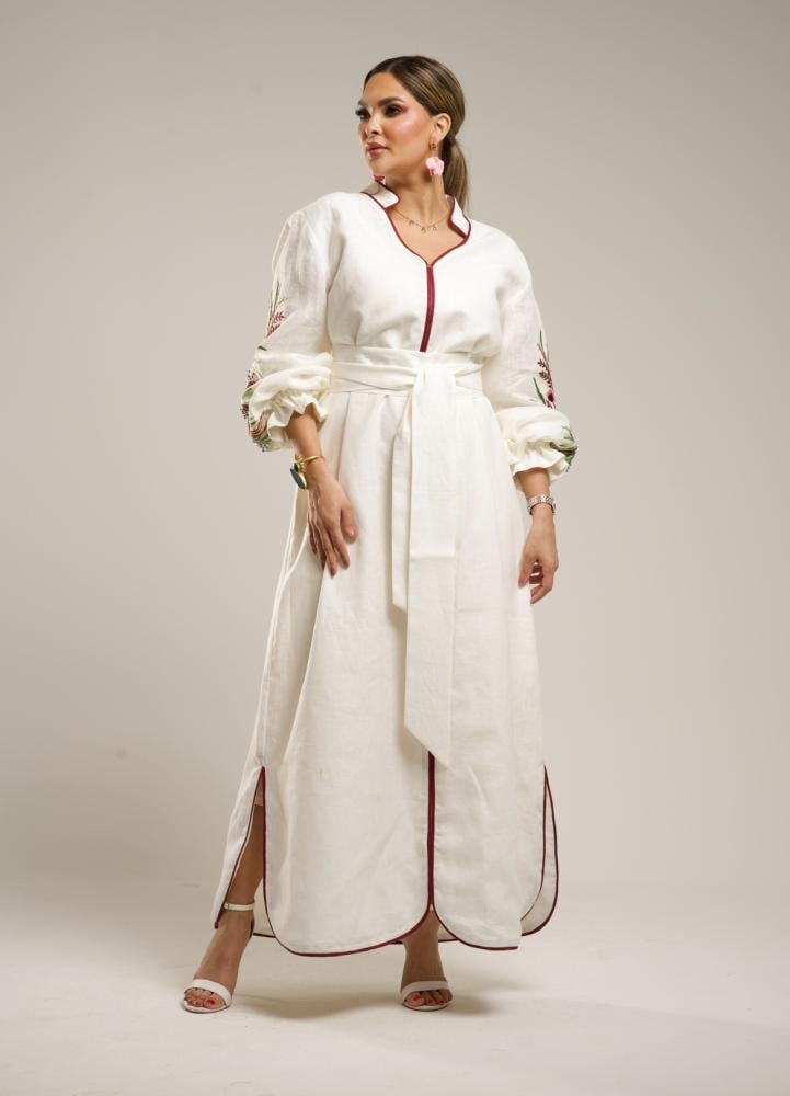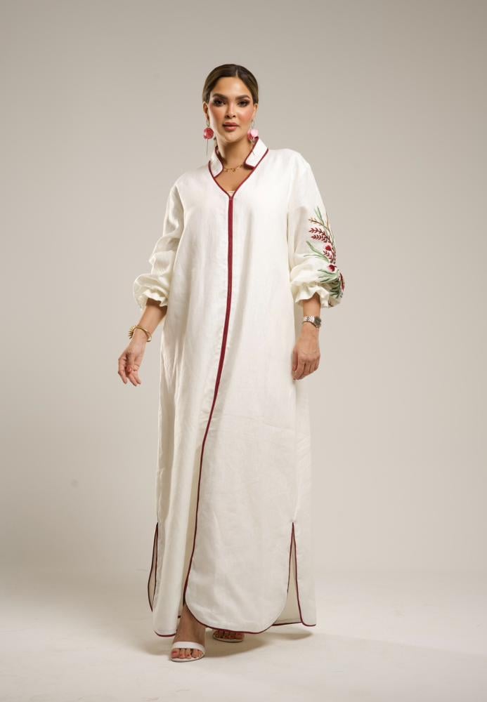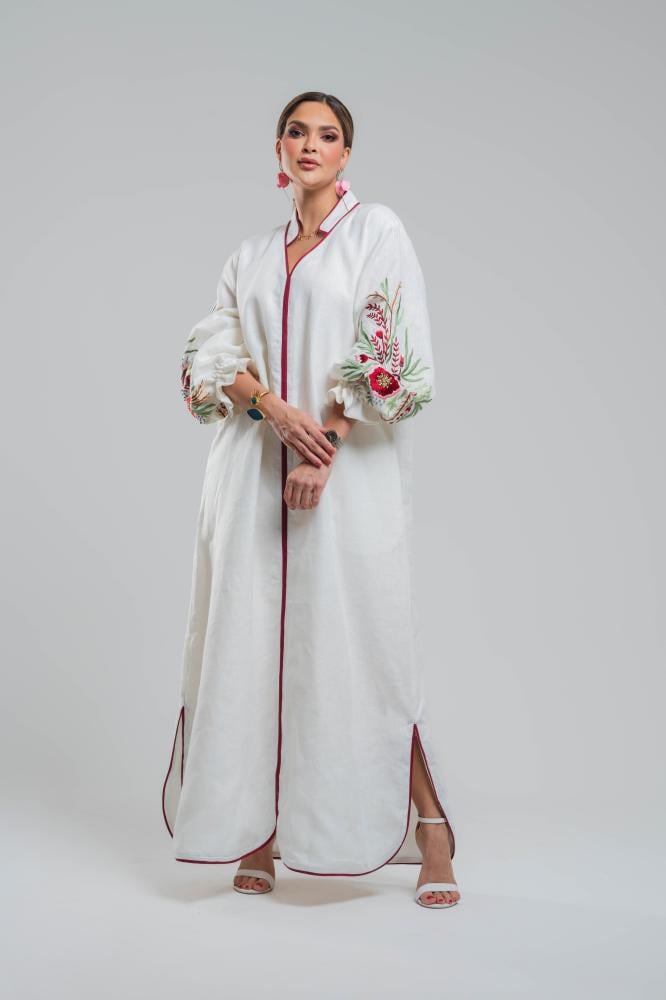 ثوب اللينن مطرز يُعد خيارًا مثاليًا لإطلالة تجمع بين الراحة والأناقة