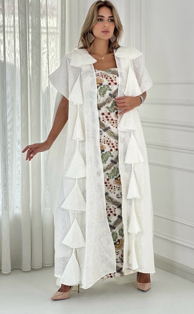 - القماش و الجودة عالية: مصنوع من قماش اللينن الطبيعي الذي يتميز بالتهوية والنعومة و الشيفون الخفيف.